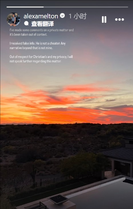4月10日讯 米兰球星普利西奇前女友、职业高尔夫球手梅尔顿更新社交媒体,表示此前暗示普利西奇出轨的发言遭到断章取义。